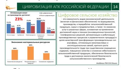 Мы были с выездным заседанием в Брянской области и увидели, как эффективно там реализуются проекты точного земледелия в картофелеводстве, а также внедрения цифровых технологий в производство мяса. Проведя мероприятия на базе Совхоза им. В.И.Ленина мы ознакомились с роботизированной фермой. В Воронежской области мы убедились в эффективности цифровизации молочного скотоводства. Все это мы видели своими глазами.