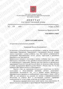 Совместно с товарищами по фракции КПРФ в Госдуме Сергеем Обуховым и Ниной Останиной отправили коллективный запрос на имя председателя Правительства РФ Михаила Мишустина с предложением рассмотреть для таких детей возможность организации учебного процесса по системе интерната на территории Российской Федерации.