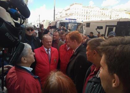 Депутаты КПРФ во главе с Геннадием Зюгановым провели встречу с москвичами на Тверской улице несмотря на попытки противодействия со стороны силовиков. Во встрече также приняли участие сотни кандидатов в муниципальные депутаты столичных районов.
