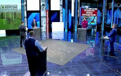 В ходе программы стало известно о решении общественного совета Херсона. На его заседании было принято решение начать процесс официального вхождения в состав России. Проведение референдума на сей счёт там назвали восстановлением исторической справедливости и возможностью обезопасить территорию Херсонской области.