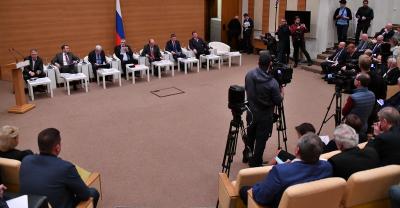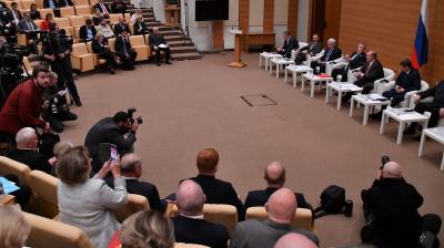 - Перед нами сейчас выступил министр экономического развития М.Г. Решетников. На этой встрече мы представили ему нашу программу Победы, наш проект бюджет развития в 35-40 триллионов рублей и целый пакет наших законопроектов, который позволит сосредоточить ресурсы для развития всех отраслей экономики. Эти законопроекты объединены по следующим направлениям: «Новая индустриализация», «Новые технологии» и «Новая Целина».