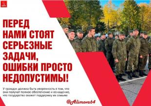 У граждан должна быть уверенность в том, что они получат полное обеспечение и оснащение, что государство окажет поддержку их семьям. Необходимо создать в обществе атмосферу консолидации, раскрыть огромный промышленный потенциал нашей страны. Перед нами стоят достаточно серьезные задачи, связанные с будущим нашего государства. Ошибки здесь просто недопустимы.