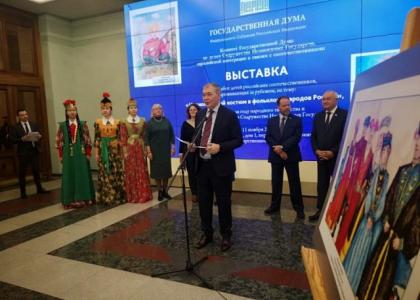 Открывая в здании Государственной Думы выставку лучших работ детей российских соотечественников «Национальный костюм в фольклоре народов России», посвященную году народного творчества и культурного наследия в Содружестве Независимых Государств, Председатель Комитета по делам СНГ, евразийской интеграции и связям с соотечественниками Леонид Калашников тепло поприветствовал всех гостей и участников.