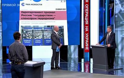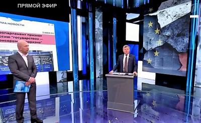 Тема, которая была предложена гостям студии для обсуждения, касалась принятой Европарламентом резолюции. В ней Россия признаётся государством-спонсором терроризма. Участники дискуссии сошлись во мнении, что этот шаг не несёт серьёзной юридической нагрузки, но в полной мере ложится в логику антироссийского курса Запада.