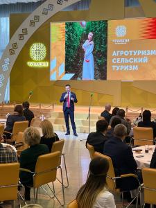Сергей Иванович в качестве спикера сессии «Агротуризм – Сельский туризм» в своем выступлении поделился опытом организации совхозом «Звениговский» летом этого года традиционного чувашского праздника Уяв, посвященного окончанию весенних полевых работ. Масштабный праздник состоялся в селе Сиктерме в Татарстане и одновременно был приурочен к 100-летию СССР.