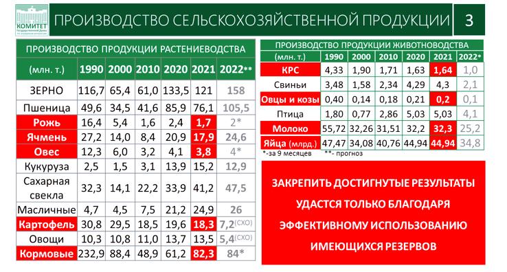 Исходя из этого, выросла и себестоимость производства сельскохозяйственной продукции, и даже по зерну она сегодня проседает. И пошли в наш адрес письма, что многие регионы уже работают в убыток, в особенности Красноярский край, Алтайский край, и д.р.