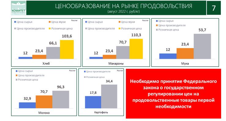 Куда это годится? Мы давно говорим о том, что нужен закон, регулирующий цены на товары первой необходимости. Его принятие позволит справедливо распределить доходность между всеми участниками производства продовольственных товаров, установить справедливые цены и поддержать покупательскую способность наиболее нуждающихся граждан.