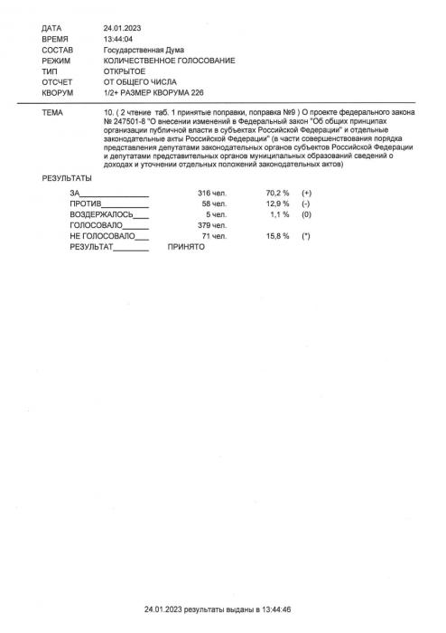 На этот раз в союзниках «Единой России» оказалась фракция ЛДПР. Вместе они в унисон поддержали эту дурно пахнущую законотворческую субстанцию. Фракция КПРФ проголосовала «ПРОТИВ».