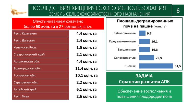 В этом ключе я хочу сказать, что это еще один наш большой резерв. Мы приняли целый пакет законодательных инициатив, направленных на охрану и восстановление плодородия, в Стратегии развития агропромышленного комплекса эти вопросы четко определены. Сегодня с каждой тонной урожая мы выносим из почвы 73 кг. NPK.