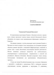 В связи с исключительной важностью наукоградов Пущино и Протвино для российской науки, просим президиум РАН обратиться в правительство РФ с предложением о проведении с участием РАН экспертизы проекта решения о расширении территории городского округа Серпухов.