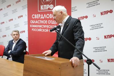 В Свердловском обкоме КПРФ состоялась встреча партийного актива и журналистов с членом Комитета Государственной Думы по обороне Виктором Соболевым. Более сорока лет он посвятил Вооружённым силам СССР и РФ, завершив службу в звании генерал-лейтенанта. С 2014 года возглавляет Движение в поддержку армии, оборонной промышленности и военной науки. Участник боевых действий в Чечне.