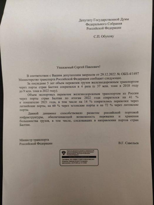 А ещё мы осуществляли транспортировку грузов через порты стран Прибалтики, чтобы они могли зарабатывать на этом баснословные деньги, на которых во многом и держалась их экономика. Ещё в 2018 году, как следует из официальных данных Министерства транспорта, объем железнодорожных грузоперевозок через порты стран Прибалтики составил 37 млн тонн. И это при том, что у нас были альтернативы - к примеру, тот же порт Усть-Луга в Лужской губе Финского залива.