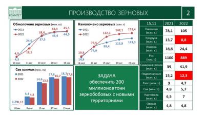 Мы не используем весь потенциал Госпрограммы эффективного вовлечения в оборот земель сельхозназначения - «Второй целины», Госпрограммы развития сельского хозяйства и регулирования рынков сельскохозяйственной продукции, сырья и продовольствия, а также комплексной программы развития сельских территорий и прочих программ. То есть у нас впереди еще очень большие задачи. Мы видим сегодня потенциал и в 200 миллионов тонн зернобобовых с новыми территориями.