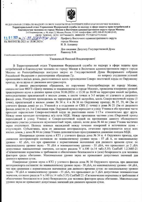 Ещё в 2021 году Народная приемная по просьбе жителей поднимала вопрос о необходимости шумозащитных мероприятий возле хорды и получила поддержку со стороны Роспотребнадзора, признавшего наличие проблемы и выписавшего ряд рекомендаций в адрес префектуры.