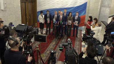 В четверг будет отчитываться в Госдуме Правительство России. Накануне мы провели с Мишустиным большую обстоятельную встречу. Телевидение показало репортажи об этой встречи. После отчета Правительства в Госдуме мы обязательно представим свою программу «Десять шагов к достойной жизни», бюджет развития в 45 триллионов рублей и 12 законопроектов. Я надеюсь, что в этот раз нас услышат и Правительство, и «Единая Россия».