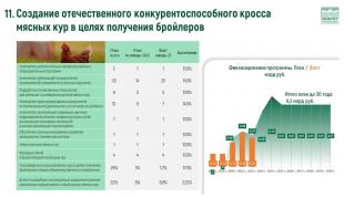 Уважаемые товарищи! По третьей подпрограмме у нас меньшее недофинансирование. Двумя министерствами выделены соответствующие деньги, идёт достойное финансирование. И у нас есть уверенность, что мы оперативно справляемся с этой задачей по производству, в создании кроссов, по производству всего необходимого для того, чтобы у нас было достаточно молодняка для бройлера. Но, уцепив за правильное звено, его надо не упустить, двигаться дальше.