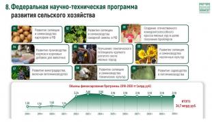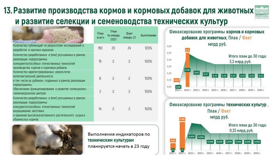 На слайде можно увидеть эти результаты в 155 миллионов тонн зернобобовых культур. Видеть базу не только растениеводческую, но видеть те достижения, которые есть у нас сегодня по достижению производства быстрого мяса, что мы имеем на направлениях овощеводства, плодовых культур, картофеля. То есть по всему спектру, где какие достижения есть, где у нас ещё зияют красным светом те недоработки, даже к 90-му году, где мы должны прибавлять.