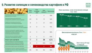 Обращаю внимание на результаты по картофелю, посмотрите, как идёт выполнение. Финансирование и выполнение, если взять всю научную часть, прекрасные результаты: и 400, и больше процентов. А смотрим финансирование: всё в два, в три раза меньше исходных паспортных показателей выделяется.
