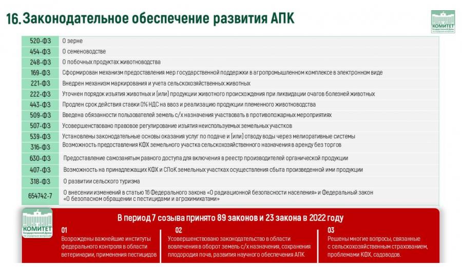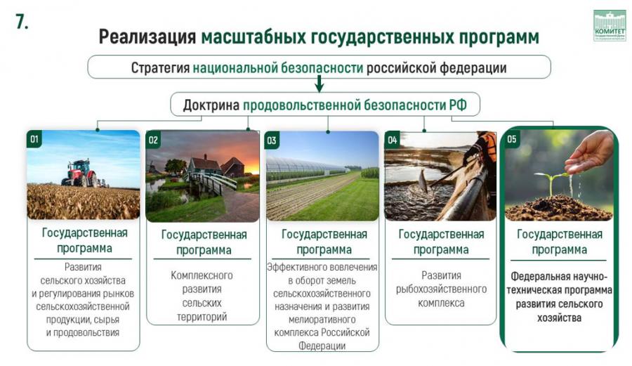 Исходя из тех событий, о которых мы говорили, и сокращение научного потенциала, и ученых, и финансирования, родилась и по тем вопросам, которые обозначены с точки зрения земельных ресурсов, кадровых систем, появились эти программы. Уже в 2017, 2018 годах, в 2017–2018-м часть из них начала работать. Мы вместе работаем сегодня семь лет вот с Владимиром Николаевичем Плотниковым, возглавляем и с другими товарищами и работаем в комитете профильном и имеем самое непосредственное участие к этим программам. А с сельским хозяйством у нас связана вся жизнь.