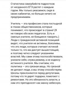Друзья! В Сети все более популярным становится открытое письмо, которое в социальных сетях мне переслала учитель из Нижегородской области - Татьяна Щелкунова (в рамках обсуждения моего обращения в защиту девочки из Яхромской школы).