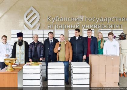 Отправка гуманитарной помощи состоялась перед началом работы круглого стола, посвящённого пчеловодству юга и новых территорий России, с площадки Кубанского государственного аграрного университета.