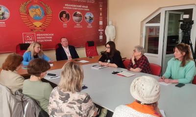 11 мая секретарь ЦК КПРФ, заместитель Председателя Комитета Государственный Думы по вопросам семьи, женщин и детей Мария Дробот и первый секретарь Ивановского обкома КПРФ, руководитель одноименной фракции в Ивановской областной Думе Александр Бойков провели рабочую встречу с Уполномоченным по правам ребенка в Ивановской области Светланой Протасевич.