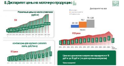 Теперь что касается цены, посмотрите, что творится, все в 3-7 раз подорожало за это время, а цена на сельскохозяйственную продукцию у производителя падает. Сегодня звонят отовсюду и сообщают что цена на зерно 8-9 рублей. Хорошо, что под реализацию зерна в 22 году министерство 30 миллиардов направло на улучшение ситуации. На мировом рынке зерно имеет цену, а наши крестьяне вот в этом ключе, как говорится, получили по зубам и по рукам. Это опять общий вопрос, которым надо серьезно заниматься. Ну почему на одном направлении за эти три года могли вырасти в 3 раза в цене, а по зерну на уровне 2018 года. А посмотрите по молоку, что твориться? Мы проводили специальные по этому вопросу совещания, приглашали представителей от науки. Но опять таки голос науки должен быть услышан. Вы же говорите, что мы эксперты с вами, а где же эти эксперты? Посмотрите, что делают торговые сети. Они покупают продукцию и накручивают две-три цены «на полке».