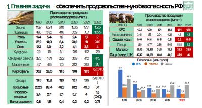 Вот мы видим на слайдах, вопросы существующие в овощеводстве, садоводстве, вопросы в производстве молока и мяса. Они никуда не ушли, с точки зрения поголовья КРС и производства молока. Нужно решать эти задачи через импортозамещение, через технологии и новые разработки. Ведь речь идет о здоровье нации.
