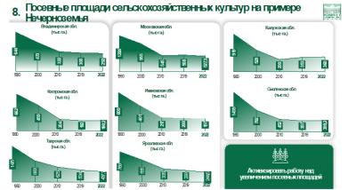Можно посмотреть следующий сайд, 25% в некоторых регионах у нас всего используют земли к 90-му году, возьмите Смоленская, Тверская, Ивановская область – 25% всего лишь.