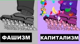 Вопрос о власти разрешается при капитализме путем установления диктатуры господствующего класса капиталистов в форме буржуазной демократии. В ситуации, когда по тем или иным причинам, например, в результате роста рабочего, профсоюзного и революционного движения, власть капиталистов (в первую очередь крупных капиталистов – олигархии) оказывается под угрозой, то крупный промышленный и финансовый капитал прибегают уже к открытым террористическим методам подавления левого движения через установление фашизма. Т.е. диктатура капитала может осуществляться при относительно благоприятных условиях в форме буржуазной демократии, а в относительно неблагоприятные времена – в форме фашизма. Иными словами, фашизм – это капитализм без демократии.
