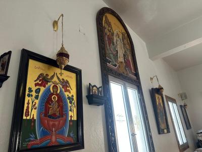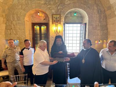 Посетили Сафитский приход, где состоялась беседа с Митрополитом северного Ливана и западной Сирии отцом Дмитрием. Российская делегация в память о состоявшемся визите передала икону, специально изготовленную в иконописной мастерской Свято-Данилова монастыря г. Москвы. Также нам показали русский класс, где проходят онлайн-занятия по изучению русского языка. Впоследствии ученики, оканчивающие здесь курсы по русскому языку, имеют возможность поступить в российские вузы на бюджетной основе. Но существует нехватка бесплатных мест для всех желающих сирийских абитуриентов.