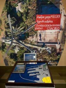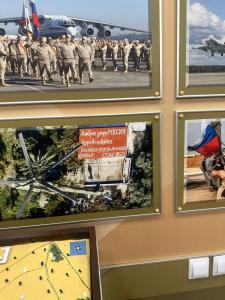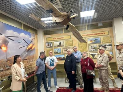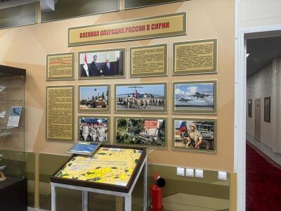 Посетили Культурный центр авиабазы Хмеймим. Делегации рассказали историю САР, главные события Сирийской специальной операции, на выставке были представлены экспонаты: медали, карты, боевые награды и трофеи.