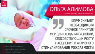 Демографическая ситуация является одним из важнейших аспектов развития национальной экономики и социального благополучия. В этой связи Коммунистическая партия считает необходимым срочное принятие мер для активного стимулирования рождаемости и создания условий, которые способствуют росту населения. Без смены экономического курса страны и улучшения социальных условий решить демографическую проблему в России будет невозможно!