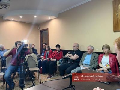 28 июня 2023 года в помещении местного партийного отделения КПРФ «Ленинское» прошла встреча активистов райкома с депутатом Государственной Думы, с секретарём Московского городского комитета КПРФ Д.А. Парфеновым. На мероприятии также присутствовали заведующая Отделом агитации и пропаганды МГК КПРФ Л.В. Вознесенская первый секретарь МПО КПРФ «Ленинское» Б.С. Коновалов, бывший секретарь Ленинского райкома КПРФ А.Г. Оборотов, секретари местного партийного отделения, депутат муниципального собрания района Хамовники А.О. Воронков и М.Б. Чистый, видные представители райкома и т.д.