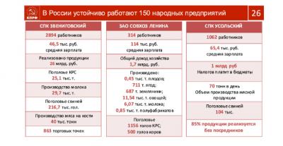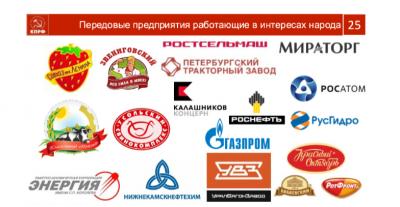 хозяйства, малый бизнес, мы в таком же плане говорим и о формахсобственности, обозначая приоритеты и мы сегодня знаем массу примеров когда государственное предприятие и в промышленности и на селе уникально работает. Мы вот проанализировали показатели Газпрома, да и в целом наших нефтегазовых компаний, они давно перешли планку по добыче Советского периода, а если взять выработку электроэнергии то мы видим прекрасную системную работу РусГидро и Росатома, в том числе и по вводу новых мощностей. Дополнительно хотел бы отметить работу в сельхозмашиностроении Петербургского тракторного завода и Ростсельмаша, и конечно же нужно сказать об эффективной работе наших предприятий таких как Красный Октябрь, Племзавод Пойма, Звениговский комбинат, СПК Усольский, концерн Калашникова и конечно же Совхоз им. Ленина.
