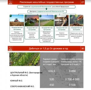 Уважаемые товарищи, у нас есть не только хорошие предприятия, у нас целые отрасли которые показывают хорошую работу и я бы хотел, исходя из посыла Геннадия Андреевича, сказать о том, что мы вложились в 5 государственных программ агропромышленного комплекса, чтобы появилась комплексная программа развития сельских территорий битва была не на жизнь, а насмерть, чтобы появилась вторая целина, программа развития сельского хозяйства, продовольственных рынков, программа по Росрыболовству, ФНТП программа для того, чтобы у нас была полная импортонезависимость, во все эти программы мы не только вложились, но мы их и ведем, и ежедневно над ними работаем.