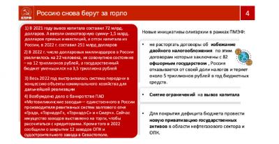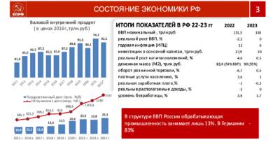 Можно говорить о денежно-кредитной системе часами, но мы в программе всё это прописываем, должна быть денежная масса, должна быть монетизация, не должна она быть 50% и высасывать последнюю кровь из экономики не имея денег, не должны быть кредиты по 13-15% и выше, не должны быть такие ключевые ставки и много чего ещё не должно быть о чём мы говорим, включая засилья торговых сетей, включая всё то, что связано с изъятием заработанных денег и в промышленности, и на селе обычным человеком, всё это перетекает в карманы олигархов вытаскивается за рубеж у нас 22 новых миллиардера появилось в 2022 году, в год войны, вывезли 251 млрд. долларов, а бюджет получил дефицит в 3,5 триллиона рублей, куда смотрят все те, кто должен смотреть за этим.