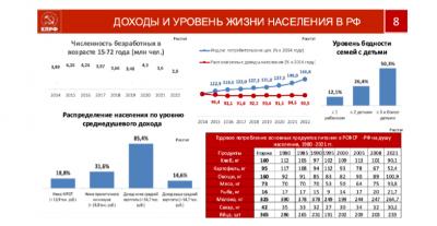 Хочу сказать о доходах, которые получают наши соотечественники, мы взяли последнюю десятилетку и видим, что доходы минусуются, то есть мы за 10 лет не увеличили доходы на семью, на человека, а только снизили, при этом мы видим что в условиях бедности не только многодетные семьи находятся, если 3 ребенка то видим, что уже 50% бедных семей. По большому счёту 50% живут в большой бедности, ещё 35% населения живут до 54 тысяч и только лишь та небольшая часть жирует.