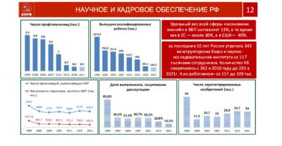 если квалифицированных рабочих 1,3 млн. выпускалось, то сейчас в десятки раз меньше, если взять науку у нас количество исследователей сократилось более чем в 2 раза. Сегодня мы добиваемся таких высочайших урожаев только потому, что сохранилась хоть какая-то наука, но по большому счёту нельзя было так относится, делалось это специально – это понятно, откуда была эта программа, в которой не только через науку, но и через образование уничтожили великую систему подготовки кадров в СССР и РФ и навязали нам ЕГЭ, бакалавриат и всю болонскую систему, сейчас мы отходим от этого, но с большим трудом.