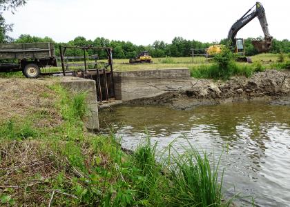 Иван Иванович пошел навстречу нуждам сельчан, выделив тяжелую строительную технику для очистных работ. Вот уже несколько недель идет расчистка пруда и русла впадающей речки от накопившегося за многие годы мусора.
