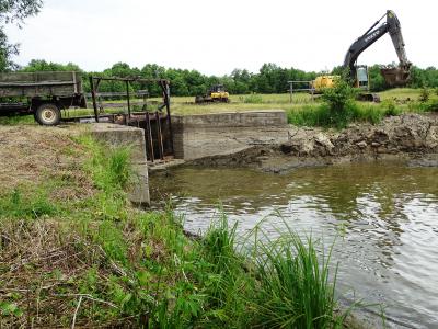 Иван Иванович пошел навстречу нуждам сельчан, выделив тяжелую строительную технику для очистных работ. Вот уже несколько недель идет расчистка пруда и русла впадающей речки от накопившегося за многие годы мусора.