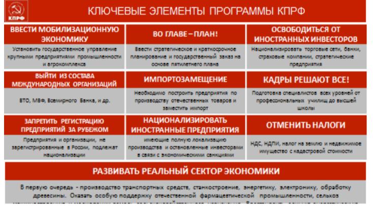 Что бы оставаться движущей силой патриотических национальных реформ, для нашей партии важно вобрать и сцементировать весь практический опыт, накопленный в центре и регионах, чтобы еще более укрепить принципиальную позицию КПРФ в качестве лидера левого народно-патриотического движения и единым фронтом продолжить работу по программе социалистического преобразования России. Мы стремимся, чтобы новая Россия в своем движении равнялась на великий созидательный пример Советского Союза. Сталинский этап научно-технической индустриализации, продолженный экономическими реформами 50х-70х годов, был временем небывалых темпов интенсификации и развития производства, внедрения высоких технологий и новых наукоемких отраслей производства, освоения космоса, атомной энергетики и целины. То славное, великое время сделало нашу Родину передовой мировой державой. Основополагающим направлением деятельности КПРФ всегда была работа в сфере науки и производства, в трудовых коллективах промышленности и села. Идя на предстоящие выборы, нам важно донести до людей базовые положения нашей программы победы, созидания и развития, и не забывать подчеркнуть главное, что созидательная работа КПРФ все эти годы является противовесом разрушительной политике предателей и либералов всех мастей, окопавшихся во власти и у руля крупнейших промышленных корпораций. Вспомним, унизительные для России, слова Ельцина: "Господи, благослови Америку!"; произнесенные 17 июня 1992г. в Конгрессе США и там же его слова о "колоссальной ответственности перед гражданами США за проводимые в России реформы";. Тогда Ельцин, а сегодня вся его камарилья, включая Чубайса, Касьянова, Дворковича, Кудрина и другие предали Россию, сбежав за границу, и оттуда сегодня клевещут на страну, давшую им жизнь и возможность развития. Это та компрадорская мразь, продажная элита, которая 30 лет заправляла, наживалась, разрушала достижения поколений наших отцов и дедов, извращенно охаивала наш строй, наших граждан, наши идеалы. Им немало удалось в разрушении страны, но они не в силах разрушить характер и душу русского человека, его чувства патриотизма, любви и преданности своему Отечеству. Наша партия, по праву, может гордиться именами глав администраций регионов, истинных государственников, собирателей земли русской, в трудные годы не допустивших развала экономики, сохранивших производство, предприятия, многое сделавших для развития и укрепления силы России. Наши губернаторы – это наша гордость.