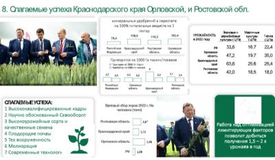 Но есть и гордость за то, что мы видели на Комбайновом заводе. Сегодня еще три новых завода строятся, благодаря которым наша держава получит свой локализованный комбайн, который по своим качествам не уступает ни одному американскому, германскому или канадскому комбайну. Я это смело могу говорить - мы в Орловской области испытание проводили несколько лет назад. Это очень важно, что страна сегодня будет иметь другую, современную и производительную, линейку тракторов и прицепного инвентаря. Потому важно, что наши ученые в рамках продовольственной безопасности страны, параллельно с техникой, создали уникальные сорта, которые дают урожай 100 центнеров с гектара, которые позволяют нам во многих регионах идти на полтора-два урожая в год. И буквально несколько дней назад на итоговом заседании Коллегии Министерства сельского хозяйства России, на котором присутствовали и заместитель Председателя Правительства Российской Федерации, и Министр сельского хозяйства Российской Федерации, выступая с докладом, я обозначил эти идеи Федерального проекта. И мы это делали ещё в 1985- 1986-ых годах даже на юге Подмосковья. У нас появилась уникальная возможность выходить на урожай 200 млн. тонн зернобобовых культур. А далее у нас появляется возможность двигаться дальше, восстанавливая свое молочное животноводство - от мелкого до крупнорогатого скота и, через генетику и селекцию и в племенном животноводстве и растениеводстве, твёрдо встать на ноги.