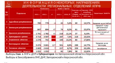 В спецопреации на передовой принимают участие более пятисот коммунистов и комсомольцев, более 200 из которых ушли на фронт добровольцами. Среди них двадцать пять секретарей региональных, местных комитетов, первичных отделений, представителей региональных контрольно-ревизионных комиссий. Под давлением русофобского накала, раздутого в странах Западной Европы, США и Англии, сегодня стали возвращаться в Россию многие русские люди. Даже те, кто ранее десятки лет жил за границей. Уважаемые товарищи, в повестке первоочередных задач, стоящих перед каждым региональным отделением, с каждым днем возрастает актуальность проведение предстоящей выборной компании. Безусловно, на выборах важно подобрать боевой состав наших кандидатов. Особого внимания и участия всей партии требует достижение необходимого результата на выборах в новых территориях. Необходимо подобрать боевых коммунистов, которые могли бы идти агитировать не только там, где тихо, но и там, где звучат разрывы снарядов, а регион живет в условиях военного времени. Мы все должны помочь этим территориям. Партия 14 лет возит на эти территории груз гуманитарного конвоя.