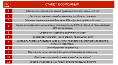 возможность сплотить под патриотическим Красным Знаменем Победы весь российский народ. Восстановить могущество страны в экономике, промышленном производстве, сельском хозяйстве, научной и социальных сферах. Вернуть то достойное место, которое страна уверенно занимала в течении многих десятилетий советского социалистического хозяйствования. Партия продолжит отстаивать идеологию Победы, высокие моральные ценности, завещанные нам прежними поколениями.