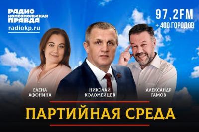 - Как всегда, «Партийная среда» выходит в прямом эфире. Ведущие программы – политический обозреватель «Комсомольской правды» Александр Гамов и Елена Афонина. Главное действующее лицо нашего эфира – член президиума ЦК КПРФ, первый заместитель руководителя фракции КПРФ в Государственной думе, первый зампред комитета Госдумы по труду, социальной политике и делам ветеранов Николай Коломейцев.