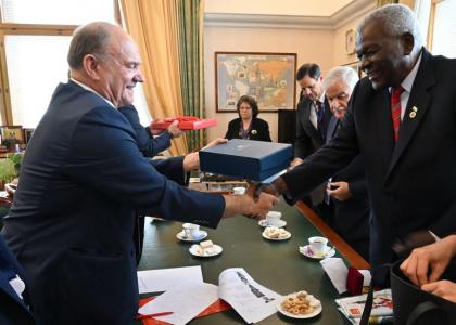 Глава кубинской парламентской делегации Ласо Эрнандес поблагодарил руководство КПРФ за активную помощь в рамках межпартийного и международного сотрудничества между Россией и Кубой. Он также рассказал о непростой экономической ситуации на своем острове, вызванной внешними экономическими санкциями.