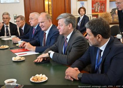 Встреча проводилась в Государственной Думе, от российской стороны в ней приняли участие заместитель Председателя ЦК КПРФ Д.Г. Новиков, член Президиума ЦК КПРФ Н.М. Харитонов, секретарь ЦК КПРФ А.А. Ющенко.
