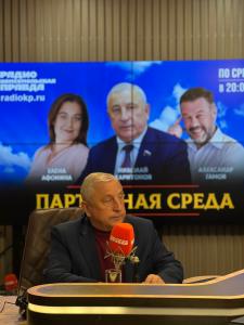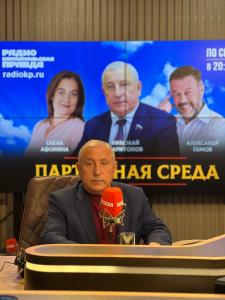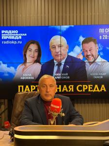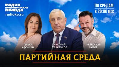 - Как всегда, «Партийная среда» выходит в прямом эфире радиостанции «Комсомольская правда». Вас приветствуют ведущие программы – политический обозреватель «Комсомолки» Александр Гамов. Я – Елена Афонина. Сегодня главное действующее лицо нашего эфира, весь час с нами будет отвечать на вопросы радиослушателей депутат Госдумы восьми созывов, председатель комитета Госдумы по развитию Дальнего Востока и Арктики, член президиума Центрального комитета КПРФ Николай Харитонов. Николай Михайлович, здравствуйте.