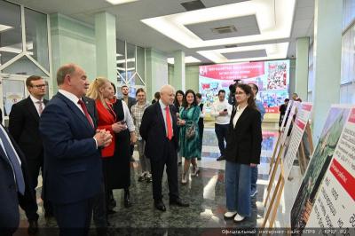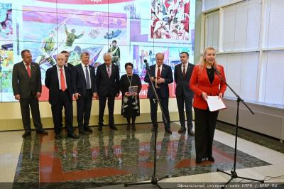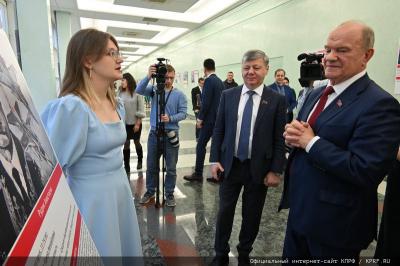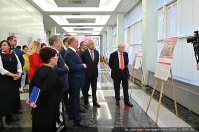 Ведущей церемонии открытия выставки была депутат Госдумы М.В. Дробот. На церемонии присутствовали депутаты Госдумы фракции КПРФ Ю.В. Афонин, Д.Г. Новиков, Н.И. Осадчий, В.П. Исаков.